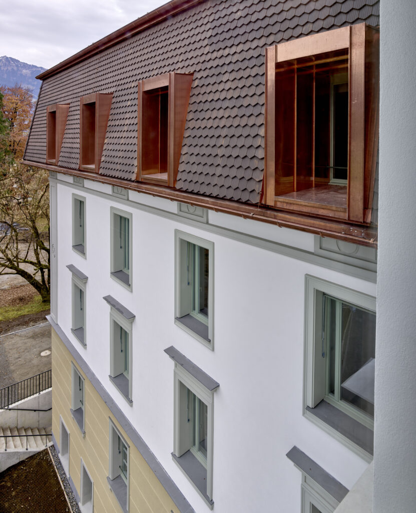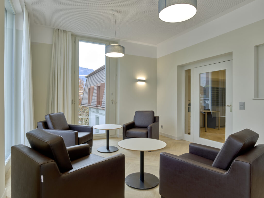 Das denkmalgeschützte alte Kantonsspital Sarnen (Baujahr 1856) wurde von Grund auf saniert und erweitert, um die Angebote der Luzerner Psychiatrie AG am Standort Sarnen aufzunehmen. Der Rückbau erfolgte bis auf die Tragstruktur; anschliessend wurde das Tragwerk etappenweise ertüchtigt und konsequent als Skelettbau konzipiert. Diese Struktur vereinfacht die haustechnischen Schnittstellen und gewährleistet langfristige Nutzungsflexibilität.